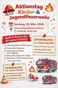 Wir freuen uns, Sie auf unserer Internetpräsenz begrüßen zu dürfen. Hier finden Sie alles Wissenswerte über die Freiwillige Feuerwehr Stadt Gefrees, Ihre Stützpunktfeuerwehr im Fichtelgebirge im Landkreis Bayreuth/Bayern – an der Bundesautobahn BAB A9 gelegen. Wir geben Ihnen einen Überblick über unsere Technik/Fahrzeuge, informieren Sie über aktuelle Einsätze/Neuigkeiten und bieten Ihnen zusätzlich einige nützliche Tipps für Ihre Sicherheit zuhause und unterwegs.