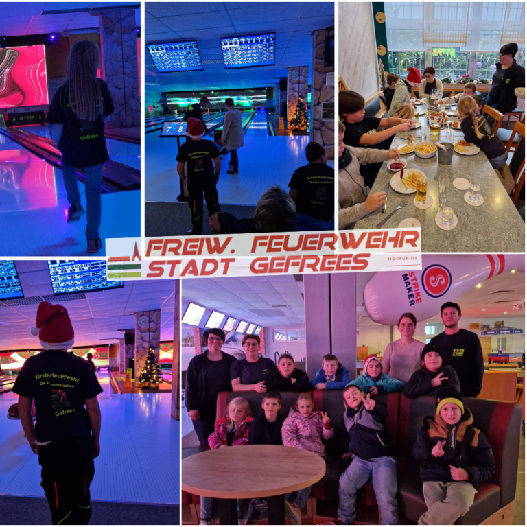 Zum Abschluss eines ereignisreichen Feuerwehrjahres traf sich unsere Kinderfeuerwehr „Die Wasserdrachen“ zu einer ganz besonderen Jahresabschlussfeier. Dieses Mal stand nicht Schlauchrollen oder Knotenlehre auf dem Programm, sondern Bowling spielen – und das sorgte für jede Menge Spaß und gute Laune.