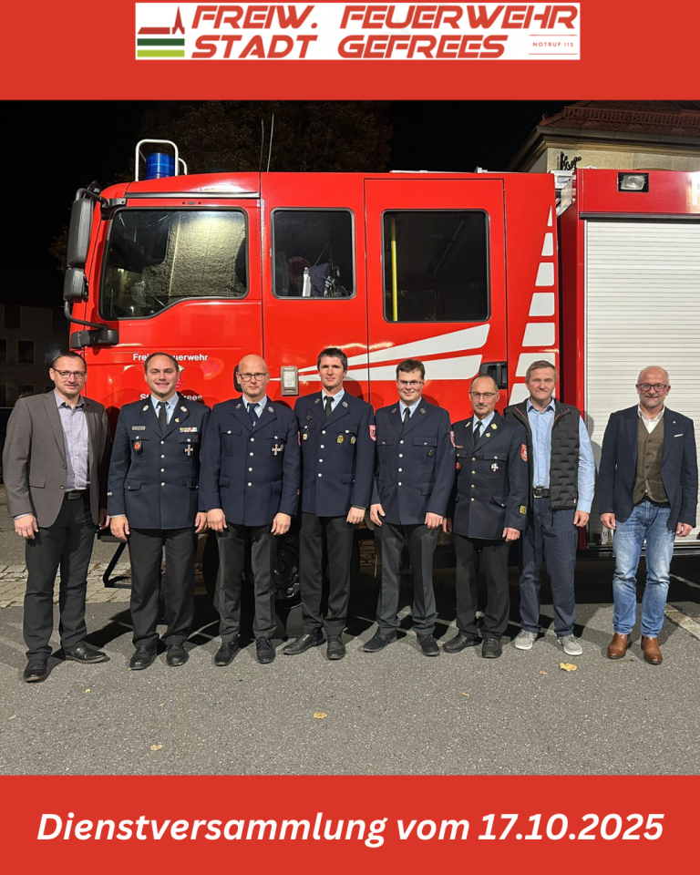 Am Freitag, den 17. Oktober 2025, fand im Rahmen einer Dienstversammlung der Freiwilligen Feuerwehr Stadt Gefrees die Wahl der Kommandanten statt. Unter der Leitung von 1. Bürgermeister Oliver Dietel und Geschäftsleiter Stefan Opel von der Stadt Gefrees, wurde die Versammlung eröffnet und die Wahl anschließend durchgeführt.