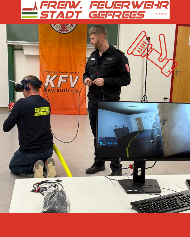 Im Rahmen einer Ausbildungsreihe auf Landkreisebene des KFV-Bayreuth nahmen mehrere Mitglieder der Freiwilligen Feuerwehr Stadt Gefrees an einem interaktiven Strahlrohrtraining teil. Ziel der Übung war es, den sicheren und taktisch richtigen Umgang mit dem Strahlrohr zu festigen und das Vorgehen bei der Brandbekämpfung realitätsnah zu trainieren.